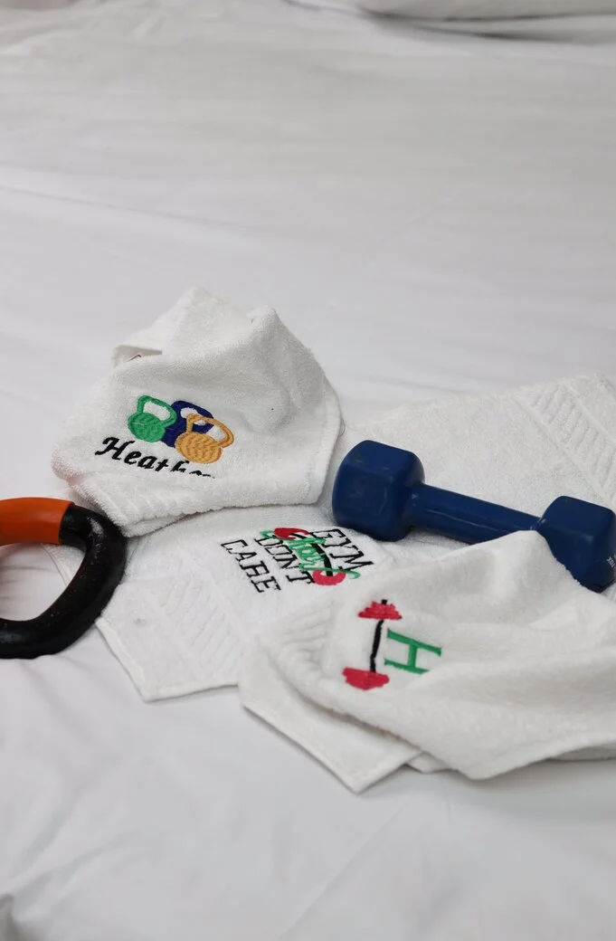 فوطة قطن رياضية مطرزة حسب الطلب – 30×50 سم. خفيفة الوزن، ماصة، وسهلة الحمل، مصنوعة من قطن 100% ومُخصصة باسمك. فوط قطنية مثالية للتمرينات أو الرياضة أو الاستخدام اليومي في الصالة الرياضية.